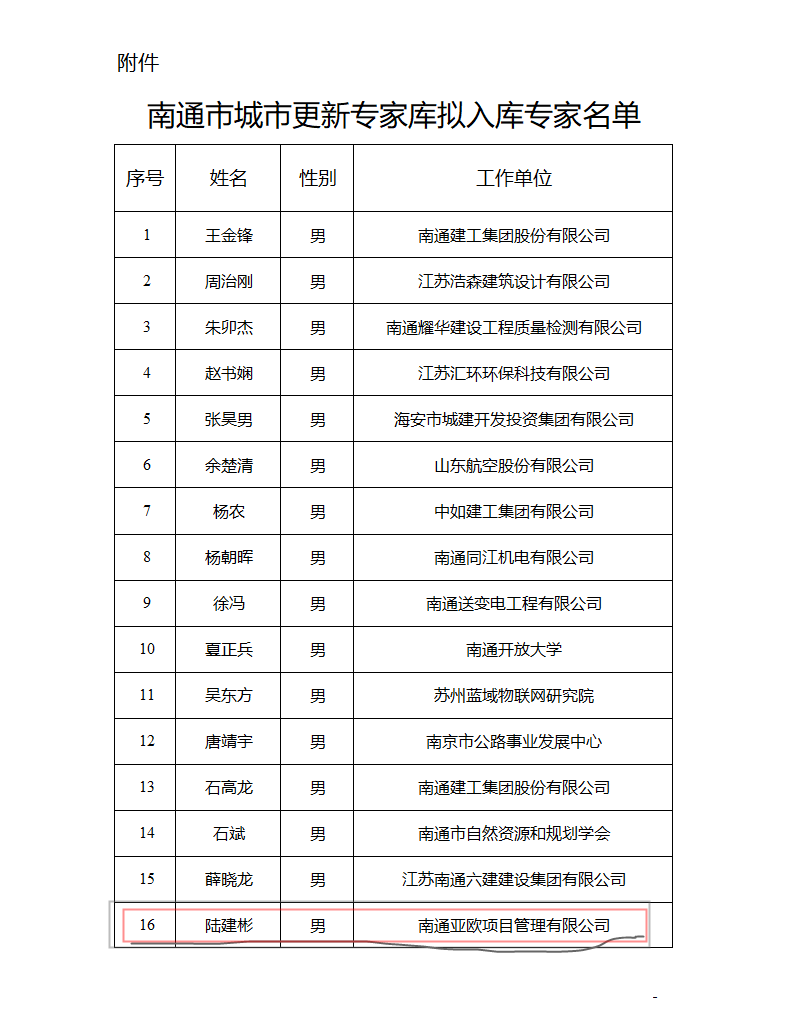 公司董事陆建彬入选南通市城市更新专家库